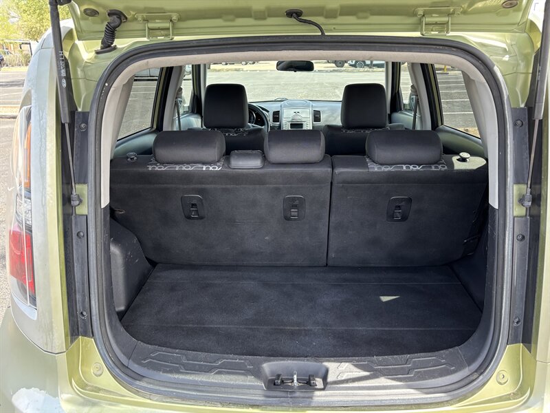 2010 Kia Soul Sport powered by a 2.0L I4 producing 142 hp and 137 lb-ft of torque. Factory-standard equipment includes cloth seating with a 60/40 split-folding rear seat, air conditioning, cruise control, tilt steering, power windows and locks with remote keyless entry, 16" alloy wheels and fog lights, plus an AM/FM/CD/MP3 stereo with auxiliary input and steering-wheel audio controls. Safety features include front and side-impact airbags, side curtain airbags, anti-lock brakes and tire pressure monitoring. This vehicle is in excellent overall condition, has under 145,000 miles (averaging less than 9,000 miles per year) and achieves approximately 24 MPG city / 30 MPG highway.